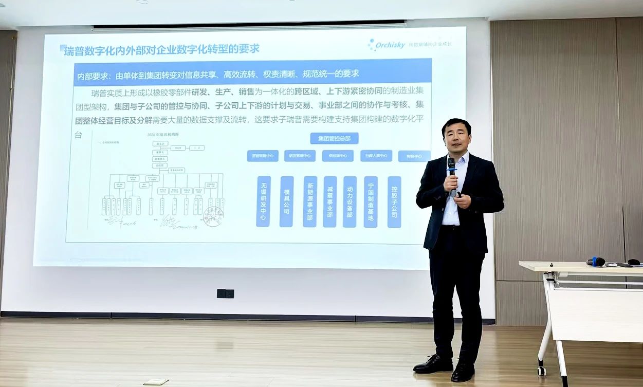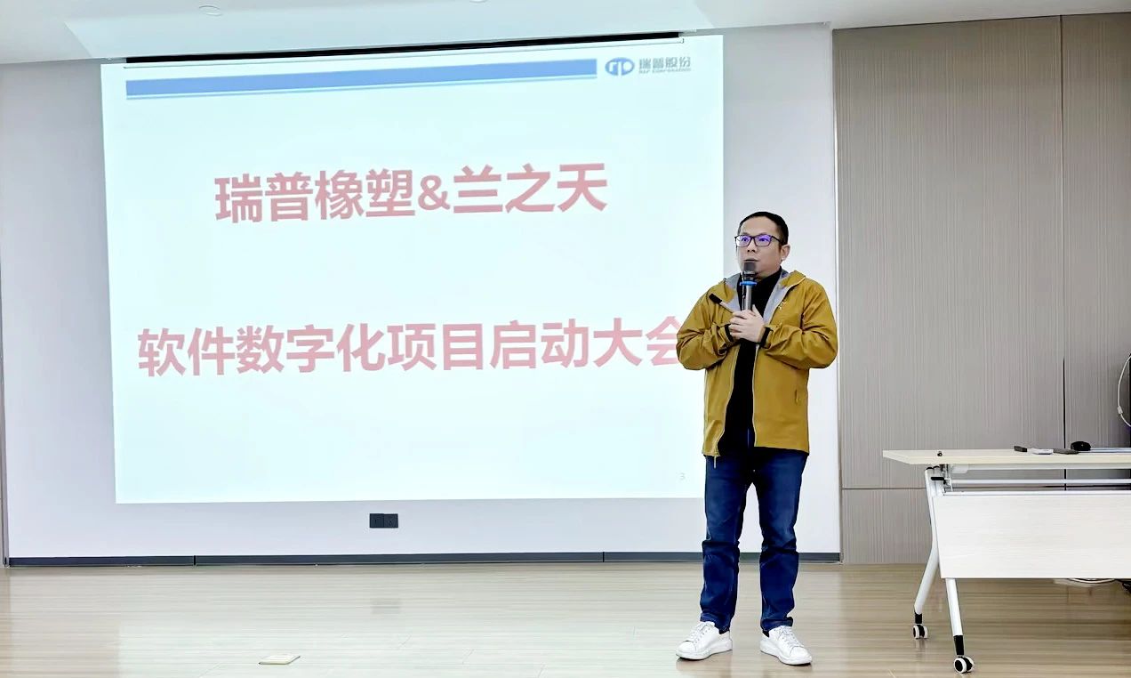 大會上,蘭之天軟件銷售總監李成豹詳細介紹了瑞普橡塑數字化轉型的整體規劃。他指出,數字化是瑞普橡塑邁向智能制造的必由之路,更是應對未來市場競爭的核心資產。此次項目以打造智能化數字工廠為核心目標,覆蓋從客戶需求到供應鏈協同的全業務鏈。通過ERP系統替換、智能制造模塊開發、數據中臺搭建等舉措,實現生產、研發、財務、質量管理的全面數字化。